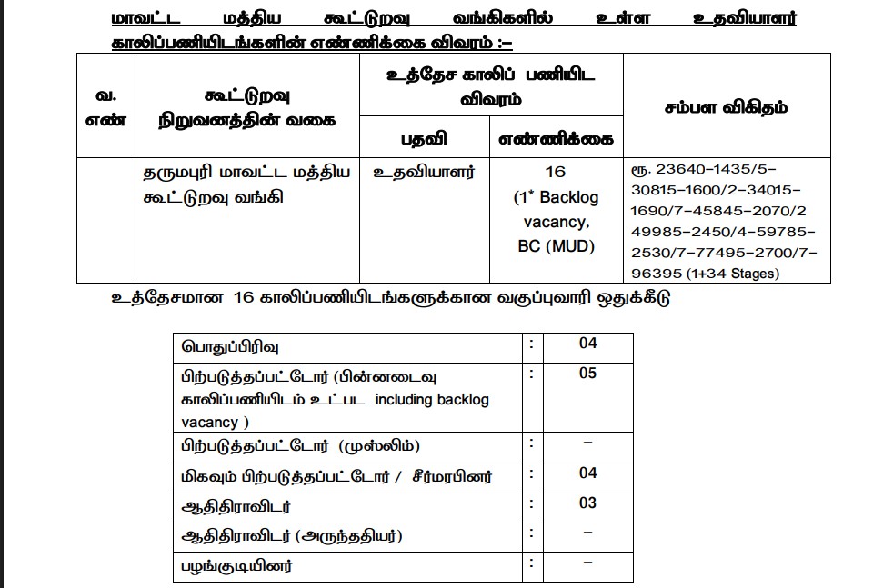 Tamil Nadu District Recruitment Bureau Cooperative Department exam notification